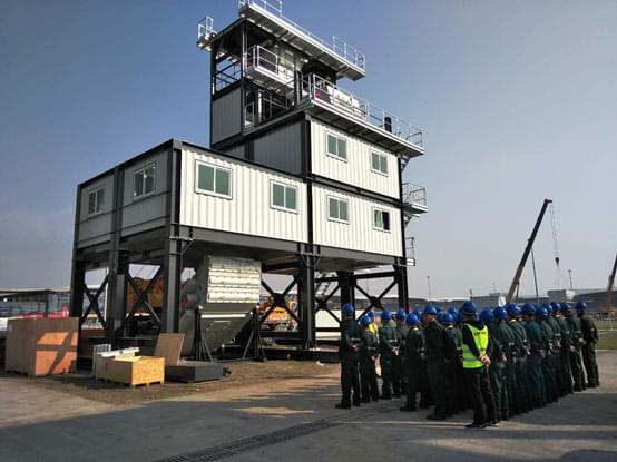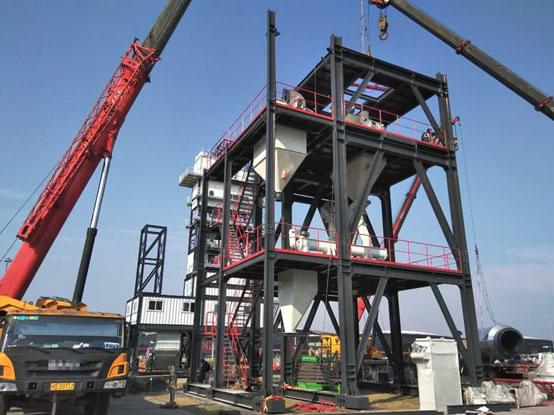 今天是上海寶馬展南方路機展品進場安裝的第五天。天氣晴朗,陽光明媚,安裝團隊干勁十足,安裝工作進展比預期中快,瀝青攪拌設備原生部分主樓安裝完成,緊接著進入熱再生部分吊裝,干混砂漿攪拌設備也安裝至攪拌層。